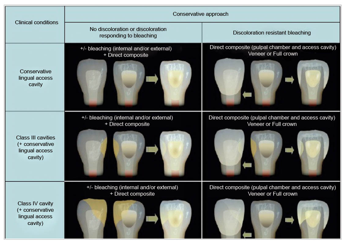 El objetivo de este artículo es clarificar, de forma esquemática, la mejor opción de tratamiento para la restauración del diente endodonciado en base a la estructura dental remanente sana. Se ha dividido en tres grandes bloques según el tipo de diente a tratar: dientes anteriores, premolares y molares, puesto que las diferencias entre ellos serán cruciales en la toma de decisiones. Se exponen las ventajas de las actuales restauraciones adhesivas, sin dejar de lado tratamientos más tradicionales en aquellos casos que todavía lo requieren. Adicionalmente, se ha tratado de aportar en todo momento un enfoque multidisciplinar, con el fin de aunar la relación existente entre la parte de operatoria y prótesis dental con los tejidos periodontales. Acompañan casos clínicos de cada una de las situaciones más frecuentes que encontramos en nuestro día a día en la práctica clínica, tratando de esquematizar cómo actuar en cada caso. Para el desarrollo del mismo, se ha tomado como base la evidencia científica disponible así como la experiencia clínica.