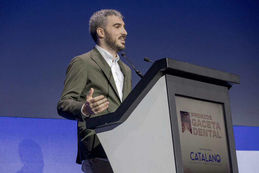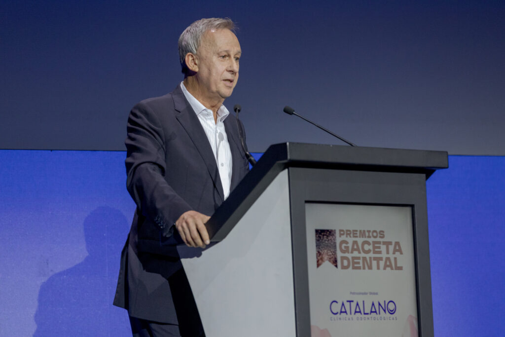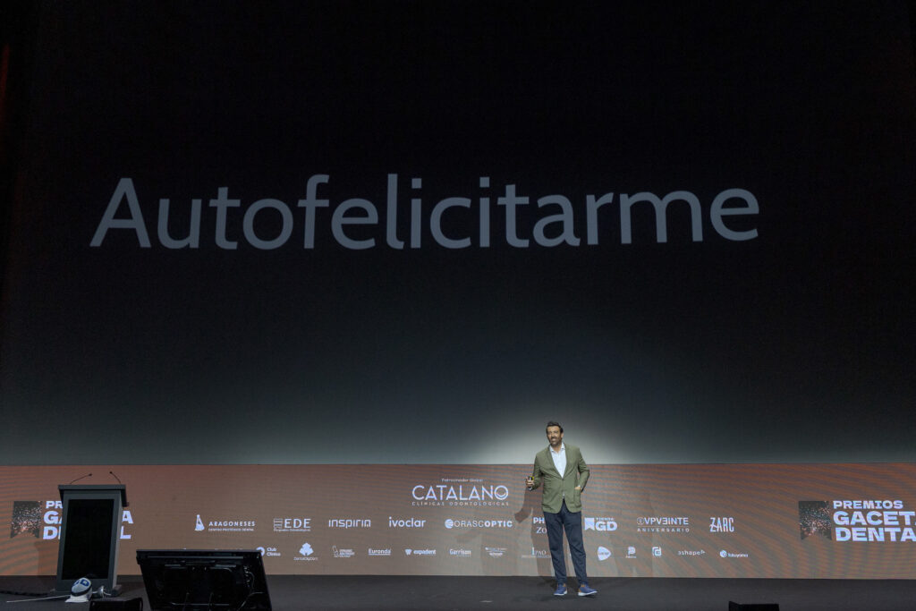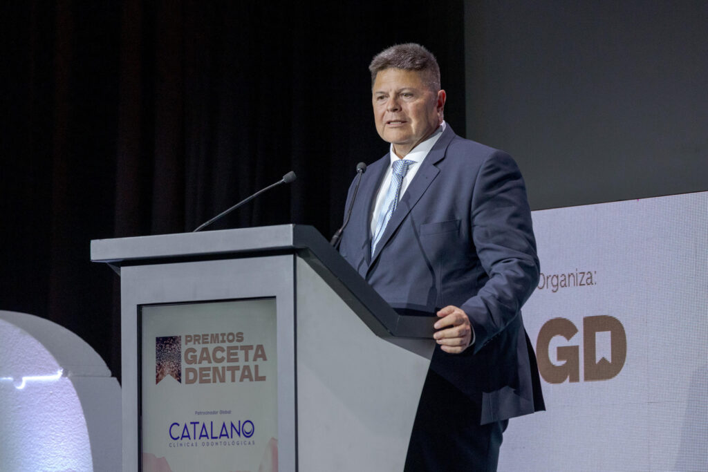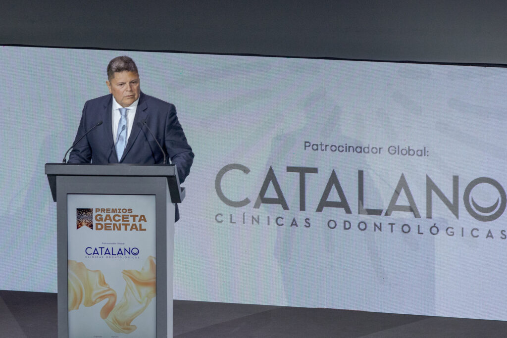 El tercer discurso de la noche lo pronunció el Dr. Gustavo Catalano, CEO de Catalano Clínicas Odontológicas, y patrocinador global de los 26 Premios GD. Este grupo de clínicas, de origen castellano-manchego, “ofrece desde hace más de veinte años, Odontología de calidad en poblaciones rurales”. En marzo, inauguraron su sede central en Alcázar de San Juan, “nuestro centro neurálgico y el proyecto de mi vida -destacó el Dr. Catalano- donde hemos conseguido una Odontología 360 grados. Un espacio de innovación y formación en el que aunamos flujo digital en el trabajo, laboratorio anexo, servicio de logopedia, fisioterapia y medicina estética, logrando una relación interdisciplinaria con todo tipo de profesionales sanitarios para que el resultado final sea el óptimo, que es lo que se merecen nuestros pacientes”, destacó el Dr. Catalano.